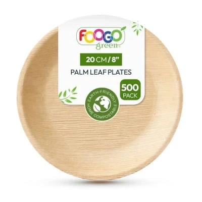FOOGO Green 500 Disposable Palm Leaf Plates, 8"(20cm) Medium Round, Eco Friendly Biodegradable Compostable Like Wooden Bamboo Paper Plates for Hot Food, Picnic Party