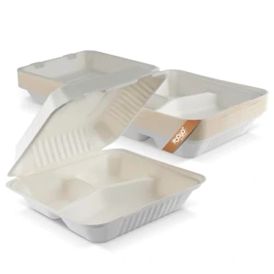 DIMENSIONS: 23x23x7.6cm (9x9x3 inches) when closed. These large takeaway boxes are perfect for cafes and restaurants serving takeaway food. They can also be used as take away containers for left overs in house parties, barbecues, weddings and other events. PREMIUM QUALITY and STURDY - Our strong sugarcane bagasse clamshells do not bend or collapse under weight and you can hold your food confidently with one hand. Suitable for any type of food – hot, cold, dry, wet, sticky, sweet, spicy – you name it! A true GIFT FROM NATURE – Made from sugarcane pulp, FOOGO Green biodegradable takeaway containers are 100% natural and free from chemicals or harmful ingredients. A GREENER alternative - Our eco disposable containers are biodegradable and can be used instead of plastic takeaway containers or polystyrene food containers that are harmful to the environment. FOOGO disposable takeaway boxes are COMPOSTABLE and BIODEGRADABLE, allowing for easy and safe disposal without harming the environment., Manufacturer: FOOGO Green