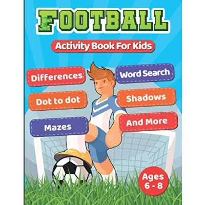 football Activity Book For Kids Ages 6 8: Workbook with 40 activities including shadows, mazes, dot to dots, word searches, colouring pages and more