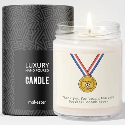 Football Coach Gift Luxury Soy Wax Candle Vanilla, Jasmine, Sugared Almond Makester
