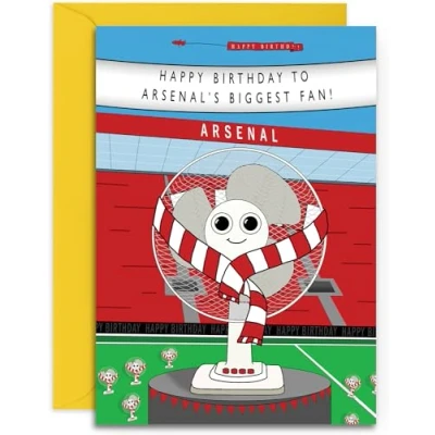 ARSENAL BIRTHDAY CARD ⭐ A great card for an Arsenal football fan and sure to put a smile on the receiver's face ⭐ Click the second image for the text inside the card. EXTRA THICK CARDSTOCK ⭐ 330gsm triple coated cardstock with a lovely matt inside surface for ease of writing SIZE ⭐This birthday card measure 148 x 210mm (A5 Size) and comes with a 162 x 229mm yellow envelope UK MANUFACTURED ⭐ Printed in our Hampshire factory ECO FRIENDLY ⭐ Our factory runs on 100% renewable energy. Our cardstock is sustainably sourced. Both the card and envelope are fully recyclable.