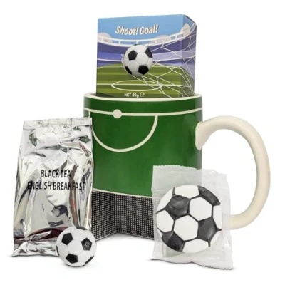 Football Mug Gift Set for Stocking Fillers Ceramic Decorated Mug, Biscuits, Toy & Tea Bags. Unique Gifts Men, Dad Birthday