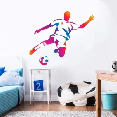 Football Player Kick Wall Sticker Decal Art Kids Bedroom Gift Mural Soccer (120cm Width x 60cm Height)