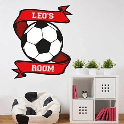 Football Wall Sticker Colour Banner on Ball Personalised Name Decal Kids Art (60cm Height x 50cm Width)