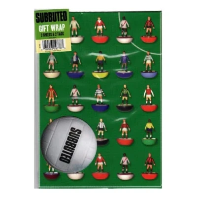 OFFICIALLY LICENSED: Our fully Licensed range of gift wrap make a brilliant and memorable extra to any gift for a special friend or family member. Using the most up to date design on the market, this Subbuteo wrapping paper is the perfect design to wrap a present with for that special someone, INSIDE: This product comes with 8 sheets of wrapping paper, and 6 gift tags GREAT FOR THE ENVIRONMENT: Our products are made of FSC Certified Paper that has passed the highest Environmental Regulation checks. EUROPE'S NUMBER ONE: Brought to you by Europe's Number One Licensed Publisher: Every Danilo product is 100% Officially Licensed. This guarantees the product has been approved by the Acts themselves and features the current and most up to date designs DIMENSIONS: Unfolded, the dimensions of each sheet is 70cm x 50cm