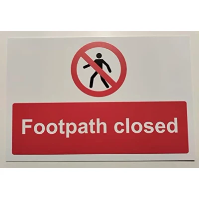 Footpath Closed Safety Sign 1.2mm Rigid Plastic 400mm x 300mm