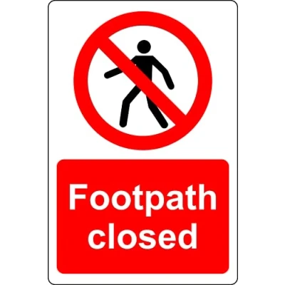 Footpath closed sign (P) 1mm Plastic (300mm x 200mm)