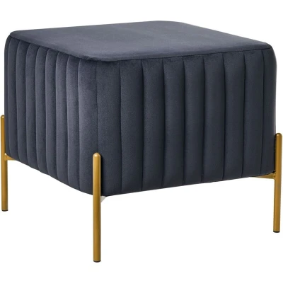 Square Living Room Pouffe in Glam Style. Add a touch of modern luxury to your home with this striking square footstool. Featuring a rich, plush velvet upholstery beautifully highlighted by vertical tufting, it creates a glamorous visual effect in any room. Supported by iron legs, the piece is sturdy and practical, serving perfectly as either a comfortable footrest or a chic extra seating option for guests. Details: Product Type: Stool General Color: Black, Gold Material Type: Fabric Main Material: Velvet Additional Material: Iron Filling Material: Foam Material Composition: 100% Polyester Shape: Square Pattern: Solid Seat Foam Density: 28 kg/m3 Storage: No Dimensions: Depth: 47 cm Width: 47 cm Height: 43 cm Seating Surface: 47x47 cm Weight: 5.5 kg Weight Capacity: 120 kg Offer Includes: 1 x Stool Key Features: Firm and Comfortable Seating, Elegant Design, High-Quality Materials, Silky-Smooth, Velvety Fabric, Multifunctional, Leg Caps for Surface Protection Assembly Information:
