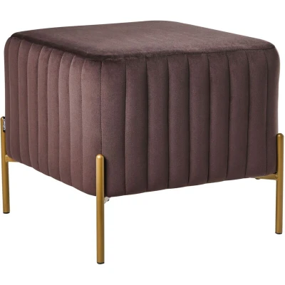 Square Living Room Pouffe in Glam Style. Add a touch of modern luxury to your home with this striking square footstool. Featuring a rich, plush velvet upholstery beautifully highlighted by vertical tufting, it creates a glamorous visual effect in any room. Supported by iron legs, the piece is sturdy and practical, serving perfectly as either a comfortable footrest or a chic extra seating option for guests. Details: Product Type: Stool General Color: Brown, Gold Shade: Dark Brown Material Type: Fabric Main Material: Velvet Additional Material: Iron Filling Material: Foam Material Composition: 100% Polyester Shape: Square Pattern: Solid Seat Foam Density: 28 kg/m3 Storage: No Dimensions: Depth: 47 cm Width: 47 cm Height: 43 cm Seating Surface: 47x47 cm Weight: 5.5 kg Weight Capacity: 120 kg Offer Includes: 1 x Stool Key Features: Firm and Comfortable Seating, Elegant Design, High-Quality Materials, Silky-Smooth, Velvety Fabric, Multifunctional, Leg Caps for Surface Protection Assembly