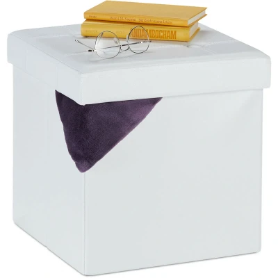 Footstool with Storage Space, Folding Stool Seat, 40 l, Padded, HxWxD: 38 x 37 cm, Faux Leather, White Relaxdays
