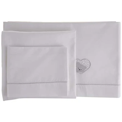 Lovely Bedroom Sheet Set Different embroidery and applications for each collection Composed of: embroidered sheet, fitted bottom sheet and pillowcase Material type: 100% cotton Size individual components: bed sheet above 120 x 80 cm; bed sheet below 120 x 65 cm; pillowcase 60 x 40 cm