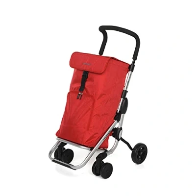 Shopping trolley light and easily closed, equipped with large bag with lower compartment accessible via zip and removable upper compartment. Main bag capacity 39,5 lt. Removable inner bag capacity 16,5 lt. The handle offers a secure and stable support, is equipped with a non-slip coating and is adjustable in height. Front swivel wheels, while the rear can be closed inside making it easy to tow on sidewalks and steps. Aluminium structure. Waterproof fabric, side shatters. Weighs Kg 5.5