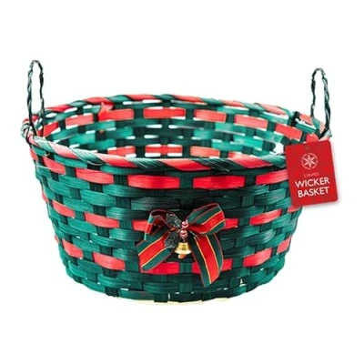 Hand-Woven Christmas Basket – Add rustic festive charm with this wicker basket, crafted from 100% natural bamboo with a red and forest green twin-colour design. Decorative & Practical – Features sturdy 9cm x 9cm (3.5in x 3.5in) handles, a festive bow, holly, and bell, making it perfect for Christmas hampers, storage, or seasonal displays. Reusable Holiday Essential – Measuring approx 30cm (11.8in), this durable basket can be reused year after year for gifting, decorating, or organising Christmas treats and goodies.
