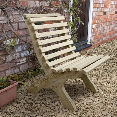 Buy Sheds DirectThe Forest Kuba Curved Wooden Garden Chair 2â0 x 2â5 has been carefully crafted to contour to the body for maximum comfort. A Curved and Contoured Seat When youâre sitting in the same position for a long time, itâs important to be comfortable and thatâs why the Forest Kuba garden chair is a winning choice. Elegant and stylish, the wooden chair has a curved seat that has been contoured to support the body and provide a relaxing experience. The chair is sturdy and durable, and the wood has been planed so that itâs smooth to the touch and free from splinters. The wood has also been pressure treated, which means we can offer a 15-year anti-rot guarantee and it wonât need further treatment in the future. Itâs PEFC® certified too, so you can be confident that itâs been sourced from sustainably managed forests. Forest Kuba Curved Wooden Garden Furniture Range The Forest Kuba range also includes two larger bench versions of the seat, which are 3â11 and 4â11 in length respectively. Theyâre great alternative options if you find you need more seating space. Shipping and Assembly Free shipping is available to most UK addresses. The Forest Kuba Curved Wooden Garden Chair comes in flat-pack format to help ensure a smooth assembly process. Key Features Modern, curved design Contoured to support the body 15-year anti-rot guarantee Made from pressure-treated and PEFC®-certified wood Splinter-free finish Comes in flat-pack format for easy assembly Also available in 3â11 and 4â11 sizes