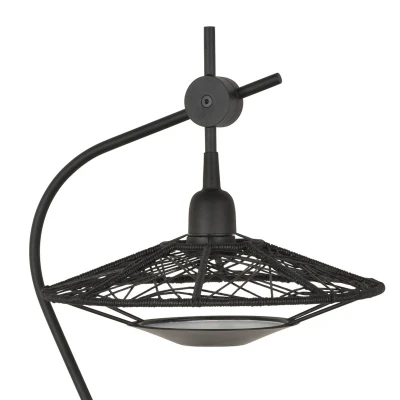 Designer table lamp Carpa with cotton and wire lampshade The designer of this light comes from Germany and studied industrial design in Berlin. Jette Scheib now lives in Barcelona. Her preference for traditional materials is reflected in her projects, as are the geometric forms. With a lot of personality, her lights create a sense of well-being and are affordable for many people, which is entirely in line with the intention of the French lighting manufacturer Forestier. The design of Forestier lights is intended to be beautiful, useful and accessible, and the black Carpa table lamp is suitable for the bedside table as well as for decorative accent lighting in the living area. The table lamp impresses with its clear lines and exciting lampshade. A metal frame forms the base and runs into the large, flat lampshade, which is open at the bottom. Thanks to a movable construction, the direction of the lampshade can be influenced. The lampshade is woven from metal and cotton and offers a customised light pattern created by the stitches.