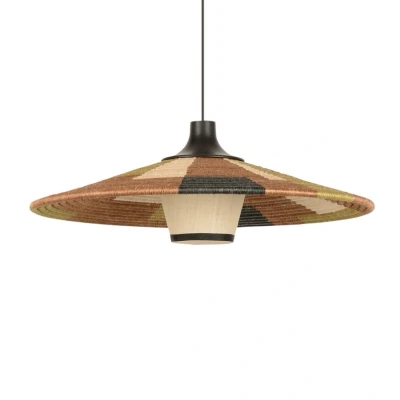 Parrot is a colourful lamp with a beautiful natural design that makes it a must-have in any relaxed and bohemian-inspired interior. The lampshade is made of rattan and abacá, which are hand-woven in a dense pattern and have a rough surface that adds a tactile element to the lamp's design and emphasises its beautiful aesthetics. As the name suggests, the lamp is inspired by the colourful plumage and exuberance of the parrot. The colours interact beautifully in a cubist pattern that gives the surface a beautiful play of colour without appearing kitschy. The lampshade is relatively wide so it does not impede light emission.