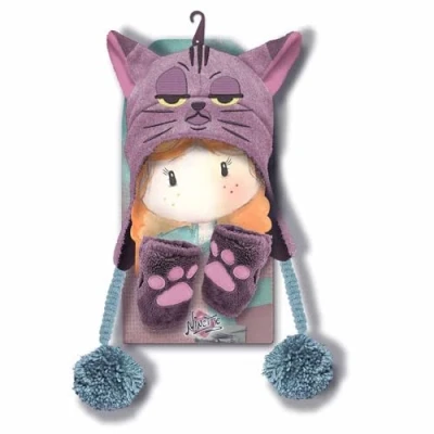 Matching adult winter gloves and hat Aviator hat with cat face design Fingerless gloves with paw design Hat dimensions (without earflaps): 2 x 25 x 23 cm Glove dimensions: 1 x 11 x 14 cm