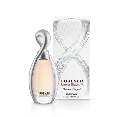 Forever Touche D'argent is a chypre fragrance for women, which was created by Jordi Fernandez, and launched in 2020 by Laura Biagiotti. The fragrance contains top notes of Algae, Pink Pepper, Pear, Sicilian Bergamot, Black Currant and CO2 Extracts; the middle notes of the fragrance are Caramel, Tuberose, Lily-of-the-Valley, Peony and Iris; in the base of the fragrance are Vanilla, Oakmoss, Musk and Tonka Bean. The fragrance is cold and metallic in the top, before going through a floral stage in the middle and a sweet stage in the dry down.