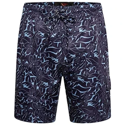 [FLORAL PRINT DESIGN] - Ideal for those looking to make a statement at beach vacations and pool parties, the Forge Hawaiian Print swim mens shorts boast an intricate floral design print. These boxer long 3/4 long short pants are crafted to perfection, with attention paid to every detail. [ELASTICATED WAIST] - The inclusion of an elasticated waistband in these short pants ensures a comfortable and secure fit suitable for prolonged wear. This feature not only ensures a comfortable fit but also provides security and support to the wearer. [3 POCKETS] - These swim shorts are equipped with two side pockets and one back pocket, which comes with a fastening feature to securely store your essential items. With ample space for your belongings, you can enjoy your swimming activities without worrying about where to keep your valuables. [INNER MESH LINING] -The inner mesh lining ensures breathability and comfort, making them ideal for water activities. The inclusion of an inner mesh lining in these shoes ensures making they are the perfect choice for any water-based activities. [MACHINE WASHABLE] - These swimming short trunks are designed for easy maintenance and can be washed in a machine for maximum convenience. Available in big mens sizes 2XL to 8XL.