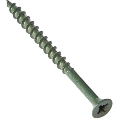 General description This is a green-treated, anti-corrosion decking screw designed for outdoor use. It features a Pozi drive head for better torque and reduced cam-out. The screw is hardened and specifically designed to prevent splitting of timber boards while allowing for expansion and contraction with seasonal changes. Suitable for decking, fencing, and exterior timber applications. Technical specifications Size: 4.5 x 60mm Finish: Green anti-corrosion treatment with 1,000-hour resistance Type: Single-threaded screw for higher pull-out strength and quick insertion Head type: Pozi drive with a line embossed at 45° to the slots Compatibility and accessories Compatible with Pozi drive screwdrivers and bits Designed for use with ACQ (Alkaline Copper Quaternary) treated timber Installation Use with appropriate Pozi drive screwdriver or drill bit Apply steady torque to prevent cam-out and ensure proper embedding Suitable for fastening timber in decking and fencing projects Usage Ideal for