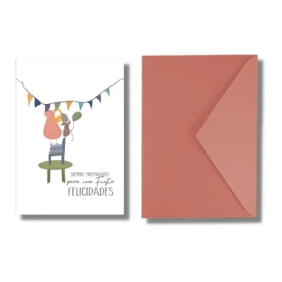 Choose our greeting cards for an original and sustainable detail on any special occasion or event: Birthday, Valentine's Day, Father's Day, Mother's Day, Baptism, Anniversary, Retirement, Graduation, Appreciation, Teacher Bring your contribution to local trade and choose our greeting cards made with love in Spain The blank inside of our cards allows you to customize your message for an even more special detail. Closed card measures 15cm x 21.5cm Each card includes a matching envelope for a perfect presentation. Envelope dimensions: 16'2 x 22'9 cm Send a greeting card with an original touch thanks to our sustainable manufacturing and meticulous design. The high-quality workmanship of our cards is due to the high-quality cardboard used in their production. Our cards are printed with environmentally friendly inks on environmentally friendly paper. Attention to detail and care in manufacturing are our trademark on every greeting card.