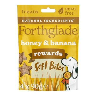 Forthglade Natural Dog Treats Banana and Honey Plant Based Grain Free Soft Bites (4 x 90g) Resealable Bags for Dogs aged 2 Months+