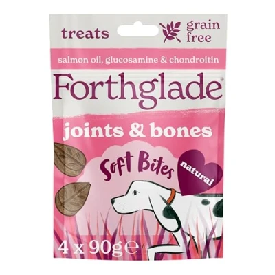 Forthglade Natural Dog Treats for Joints and Bones Grain Free Soft Bites (4 x 90g) Resealable Bags Dogs aged 2 Months+