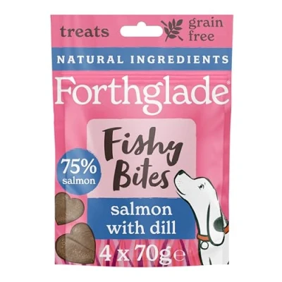 Forthglade Salmon with Dill Fishy Bites 100% Natural Indulgent Dog Treats Grain Free, Air Dried to Lock in Goodness Suitable for 2+ Months 4 x 70g Resealable Bags