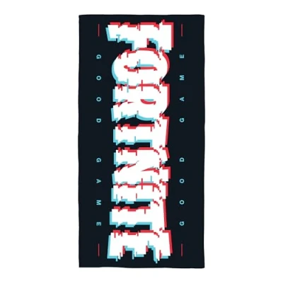 OFFICIAL PRODUCT: Officially licensed by Fortnite, this towel is made to a high standard and designed to last FORTNITE DESIGN: Celebrate your Victory Royale, this towel features the Fortnite logo with digital distortion and red and blue shading, and ‘Good Game’ on a striking black background VERSATILE: Large enough to be used as a beach towel or at the pool, but can be rolled small enough to fit in a school bag or suitcase, and durable enough to be an everyday towel EASY CARE: The Fortnite towel is 100% cotton and is washing machine and tumble dryer safe at a low temperature MEASUREMENTS: Large enough to be a comfortable beach towel, this Fortnite towel measures 70 x 140cm