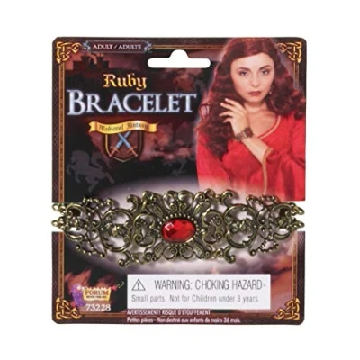 STUNNING DESIGN: Embrace the allure of the past with the women's ruby stone bracelet, features a stunning ruby centerpiece that exudes elegance and nobility. A timeless accessory that perfectly complements any medieval or knight-themed attire. HIGH-QUALITY MATERIALS: Made with the finest quality materials, this bracelet is designed to last and withstand everyday wear. COMFORTABLE FIT: Its adjustable clasp ensures a comfortable fit for all wrist sizes, making it suitable for women of all ages. PERFECT FOR VARIOUS OCCASIONS: Ideal for themed events like Medieval and Knights gatherings, Halloween, or cosplay, it enhances any costume with a touch of authenticity and style. PERFECT GIFT IDEA: This bracelet is an ideal gift for any occasion, whether it's a birthday, anniversary, or just to show someone you care, this bracelet is sure to make a lasting impression., Manufacturer: Forum Novelties