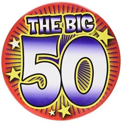 VIBRANT JUMBO BUTTON PIN: Celebrate the big 5-0 with flair. The jumbo-sized 'the big 50' multicolor pin is a perfect accessory for this momentous milestone celebration. TOP-NOTCH QUALITY: Crafted from high-quality, durable material, ensuring a long-lasting, vibrant accessory you can cherish and remember for years to come. EFFORTLESS USE: The easy-to-use safety pin design securely attaches the button to your clothing, making it the perfect accessory to proudly wear throughout your big day. VERSATILE APPLICATION: The big 50-button pin is ideal not just for birthdays, but also for anniversary parties, work promotions, and other major celebrations. Let everyone know you're celebrating a significant milestone. SAFETY FIRST: Note that there are functional sharp points on the pin, not suitable for children under 4 years old, always use them with caution., Manufacturer: Forum Novelties