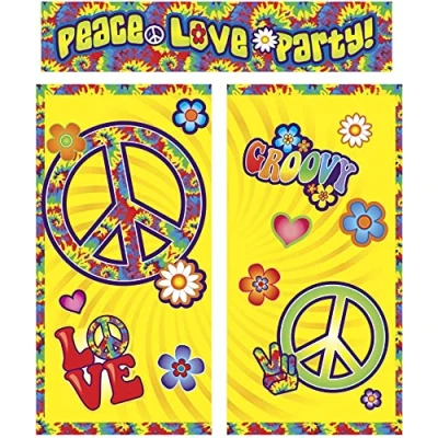 Hippie Decor-Backdrop Set/3pc/6' Tall Size: Banner 1' x 5' and Two Panels 5' x 2.5' Each The Perfect Hippy Party Decoration Includes 3 Pieces Hippie Decor-Backdrop Set (Banner and Two Panels) Ideal Dress Up for Themed Parties, Halloween and World Book Day, Manufacturer: Bristol Novelty
