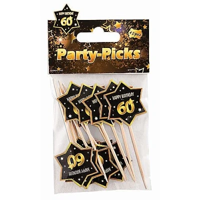 60th Birthday Party Picks Pack of 12 Party Picks Stick Size approx. 9 cm Perfect for your cakes, cupcakes, muffins, sandwiches and much more. Add matching tableware to complete your party! Ideal Dress Up for Themed Parties, Halloween and World Book Day, Manufacturer: Forum Novelties