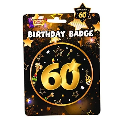 60th Birthday Badge Measures approx.: 15cm Diameter Inlcudes Pin 60th Birthday Badge Fabulous 60th Birthday Badge Add matching accessories to complete your party! Ideal Dress Up for Themed Parties, Halloween and World Book Day, Manufacturer: Forum Novelties