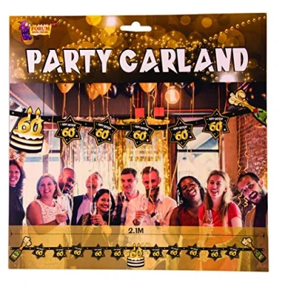 STUNNING DESIGN: Celebrate turning 60 in style with our eye-catching 'Happy 60th birthday' party garland, featuring a luxurious black and gold color scheme that will elevate any celebration. PREMIUM QUALITY MATERIAL: Crafted from high-quality materials, durable and long-lasting garland ensures a stunning display without the risk of tearing or fading, making your party decor stand out. EASY SET-UP: No need to stress over complicated set-ups; our party garland is simple to assemble and hang, allowing you to focus on enjoying the festivities. VERSATILE USE: Perfect for various celebrations, such as 60th birthday parties, anniversaries, or milestone events; this versatile garland can also be used as a backdrop for photo booths, cake tables, and more. CREATE UNFORGETTABLE MEMORIES: Elevate your celebration with our 'Happy 60th birthday' party garland and make your special day truly unforgettable, leaving a lasting impression on your guests., Manufacturer: Forum Novelties