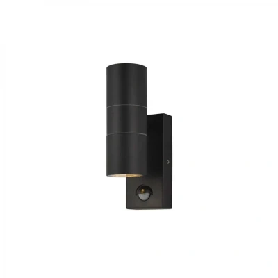 Forum Leto Up/Down Wall Light with PIR GU10 Black. Manufactured from steel the Forum Leto wall light is available in a modern textured black finish.