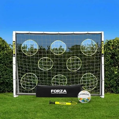 FORZA 8ft x 6ft Football Goal Ready, Set, Goal! All Weather uPVC Goals Optional Target Sheet, & Carry Bag Included (Goal, Ball, Sheet and Bag)