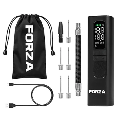FORZA Digital Ball Pump│Rechargeable Electric Air Pump with LED Torch Includes Needles & Flexible Hose Portable Football, Rugby, Basketball Netball Inflator (With Pack of Five Needles)