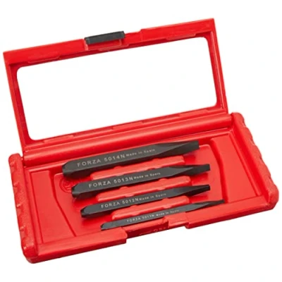 Set of 4 or 6 broken screw extractors. In a red pastic suitcase., Manufacturer: Forza