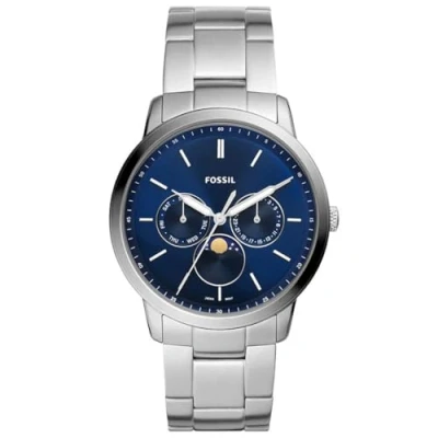 Case size: 42mm; Band size: 22mm; quartz movement with 3-hand analog display; mineral crystal face Silver plated stainless steel case; blue dial without date window Silver plated stainless steel bracelet with 2 pusher foldover clasp closure; interchangeable with Fossil 22mm watch straps Water resistant to 165 feet (50 M): suitable for short periods of exposure to water i.e washing hands or showering/bathing. Not suitable for recreational swimming, diving or snorkeling. Circumference - 200+/- 5MM