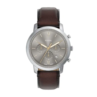 Case & Movement: 44mm case, 22mm band width, scratch resistant mineral crystal, accurate quartz movement with chronograph analog display, imported Dial: Round silver stainless steel case, with a sunray gray dial Watch Band: Brown genuine leather band that is self adjustable for a customized fit Warranty type:Manufacturer; 2 Years Warranty