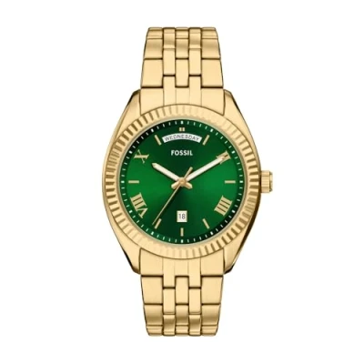 Case & Movement: 42mm case, 22mm band width, scratch resistant mineral crystal, accurate quartz movement with 3-hand day-date analog display, imported. Dial: Round gold stainless steel case, with a sunray green dial. Watch Band: Gold durable stainless steel bracelet; links can be removed for a customized fit. Water Resistant: Up to 50m (165ft): Wearable for short periods of recreational swimming and showering, but not diving or snorkeling; 5 ATM. Warranty type:Manufacturer; 2 Years Warranty