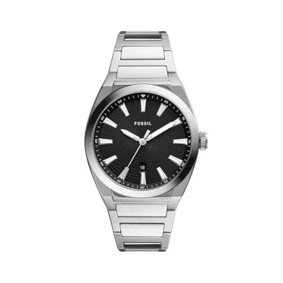Fossil Watch for Men Everett 3 Hand, Quartz Movement, 42 mm Silver Stainless Steel Case with a Strap, FS5821