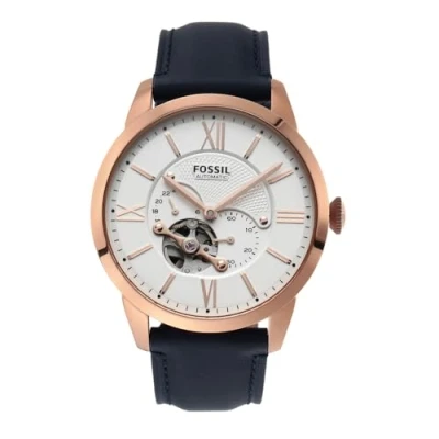 Fossil Watch for Men Townsman Auto, Automatic Movement, 44 mm Rose Gold Stainless Steel Case with a Leather Strap, ME3171