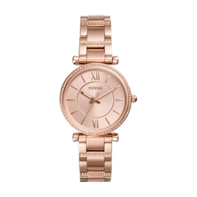Fossil Watch for Women Carlie, Quartz Movement, 35 mm Rose Gold Stainless Steel Case with a Strap, ES4301
