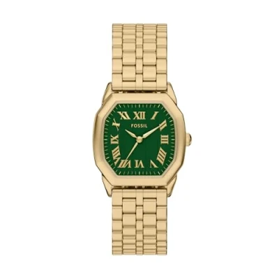 Case & Movement: 32mm case, 16mm band width, scratch resistant mineral crystal, accurate quartz movement with 3-hand analog display, imported Dial: Octagon gold stainless steel case, with a textured green dial. Watch Band: Gold durable stainless steel bracelet; links can be removed for a customized fit. Water Resistant: Up to 30m (100 ft): Will withstand splashes or brief immersion in water, but not suitable for swimming or showering; 3 ATM. Warranty type:Manufacturer; 2 Years Warranty