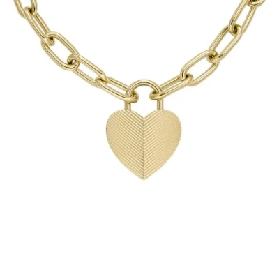 Fossil Women's Harlow Linear Texture Heart Gold Tone Stainless Steel Pendant Necklace, JF04656710