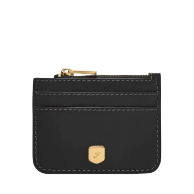 Smooth Leather, Zip Card Case 10.16 cm L x 0.38 cm W x 7.62 cm H Exterior Detail: 4 Credit Card Slots Interior Detail: 1 Key Ring Zipper Closure