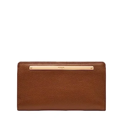 Fossil Women's Liza Leather Slim Bifold Wallet for Women, Brown W/Gold, One Size