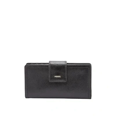Fossil Women's Logan Leather RFID Blocking Tab Clutch Wallet for Women, Black, One Size